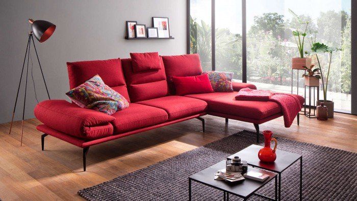 ButtonModell TL 2380 - Polstergarnitur im lässig-eleganten Style, strapazierfähiger Stoffbezug im modernen rot, Maße ca. 300 x 170 x 90 cm, bodenfrei